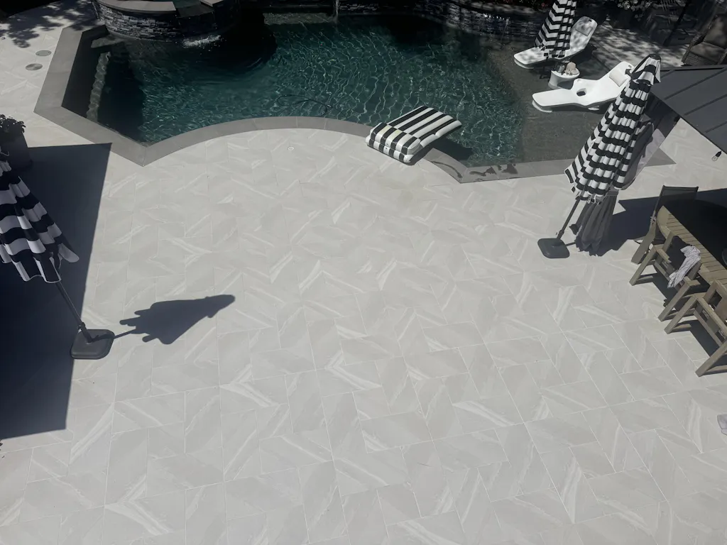 I put two coats of Tuff Grip on the new porcelain tile we just installed, (it was very slippery wet), now it has Great grip and is very secure. I used the Clear Tuff grip and it turned out great, you can not see the coating, but you can definitely feel the grip when you walk. And it feels fine on bare feet, I highly recommend this for around a pool or wet area..